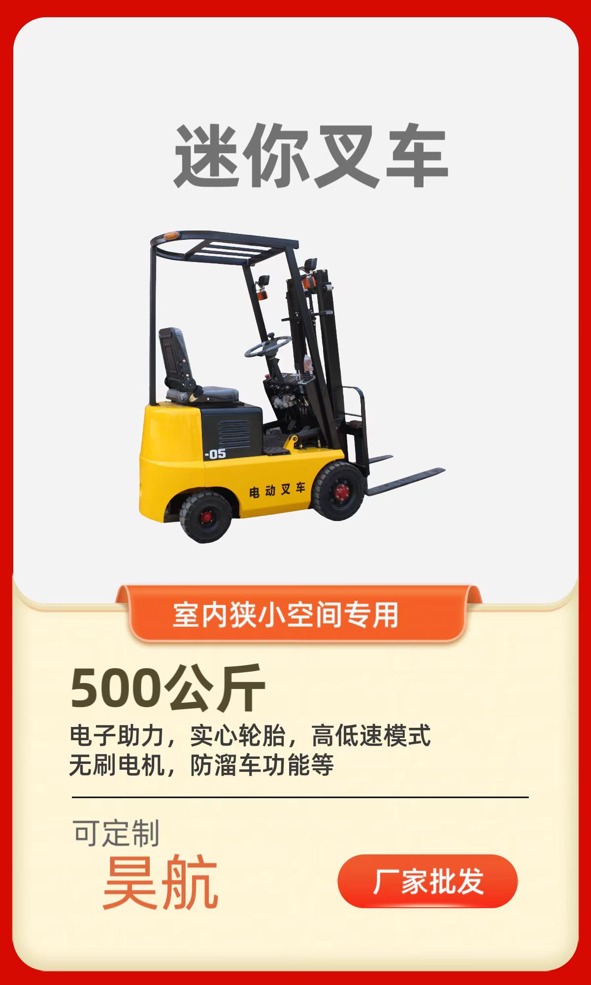 首頁(yè) > 新能源電動(dòng)叉車山東昊航新能源電動(dòng)叉車主要產(chǎn)品有0.5噸微型電動(dòng)叉車、0.8噸迷你型電動(dòng)叉車、1噸小型電動(dòng)叉車、1.5噸四輪電動(dòng)叉車、2噸新能源電動(dòng)叉車、2.5噸純電動(dòng)叉車、3噸鋰電電動(dòng)叉車、3.5噸鋰電叉車、5噸電動(dòng)叉車等多款車型,適用于不同工作環(huán)境。我們根據(jù)客戶需求,提供定制化服務(wù),如加裝側(cè)移、門架起升高度、安裝司機(jī)坐姿狀態(tài)的感知系統(tǒng)、叉車在作業(yè)人員不在操作位置時(shí)自動(dòng)停止動(dòng)力運(yùn)行、同時(shí)安裝司機(jī)指紋采集器,叉車需刷卡或是指紋解鎖后開啟操作,可避免無證駕駛情況發(fā)生,多重防護(hù)功能,以滿足客戶不同使用場(chǎng)景的需求。