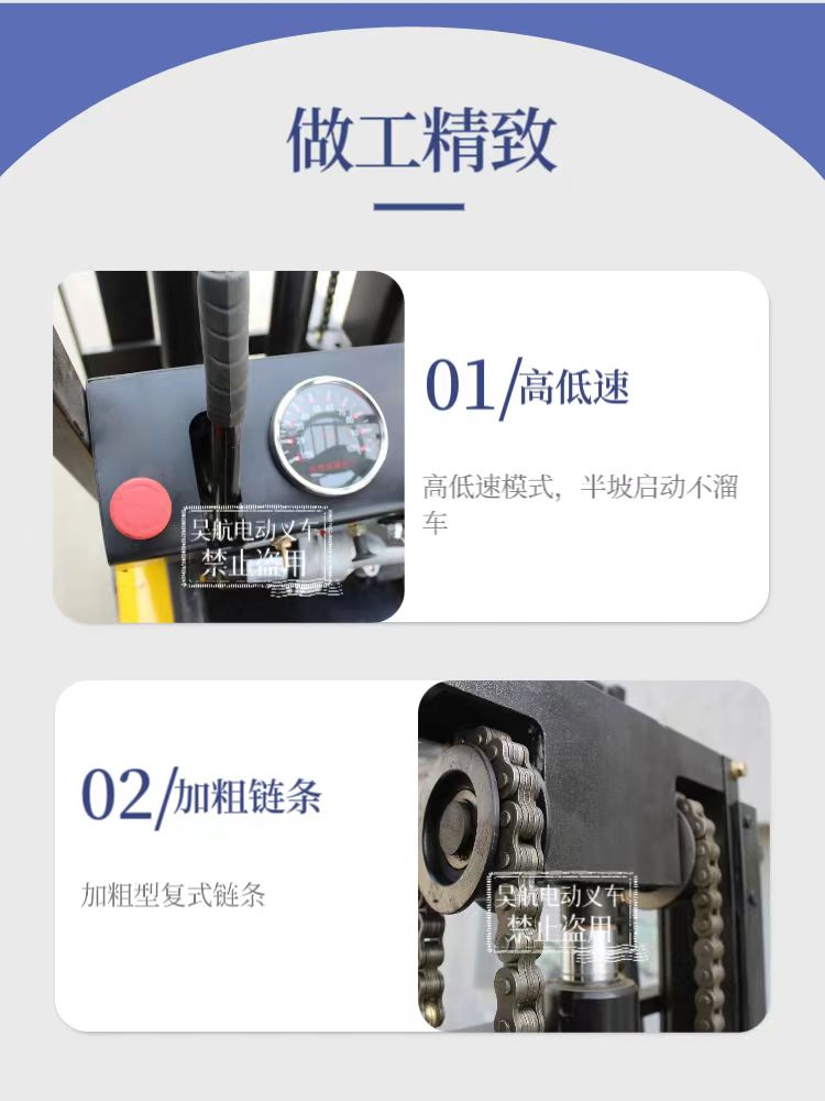 電動叉車 昊航新能源電動叉車主要產(chǎn)品有0.5噸微型電動叉車、0.8噸迷你型電動叉車、1噸小型電動叉車、1.5噸四輪電動叉車、2噸新能源電動叉車、2.5噸純電動叉車、3噸鋰電電動叉車、3.5噸鋰電叉車、5噸電動叉車等多款車型,適用于不同工作環(huán)境。我們根據(jù)客戶需求,提供定制化服務(wù),如加裝側(cè)移、門架起升高度、安裝司機(jī)坐姿狀態(tài)的感知系統(tǒng)、叉車在作業(yè)人員不在操作位置時自動停止動力運(yùn)行、同時安裝司機(jī)指紋采集器,叉車需刷卡或是指紋解鎖后開啟操作,可避免無證駕駛情況發(fā)生,多重防護(hù)功能,以滿足客戶不同使用場景的需求。